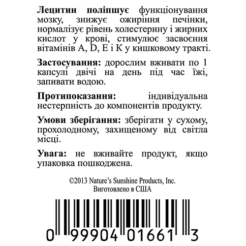 Состав - 1 капсула: лецитин (33,5%) - 560 мг (187,6 мг - 2,68% от АСП).