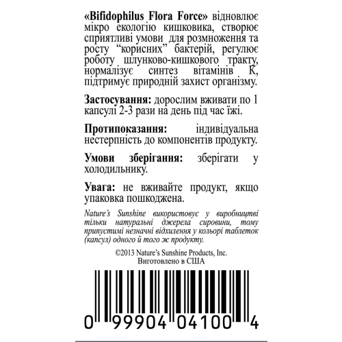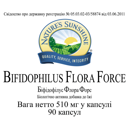БАД к пище Бифидофилус Флора Форс НСП является источником пробиотических микроорганизмов (бифидобактерий и лактобактерий).