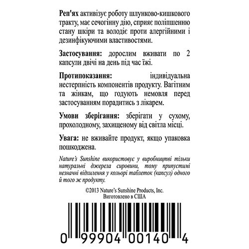 Состав - 1 капсула: репейник корни (Arctium lappa) - 360 мг.