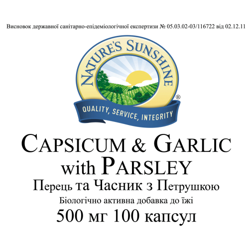 БАД к пище Перец, Чеснок, Петрушка является дополнительным источником флавоноидов, аллицина.