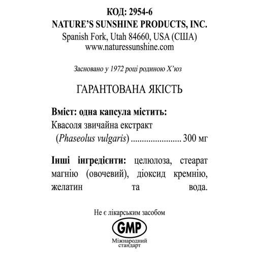 Состав - 1 капсула: экстракт фасоли обыкновенной (Phaseolus vulgaris) - 300 мг.