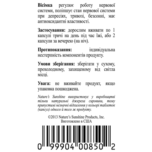 Применение: взрослым принимать по 1 капсуле 3 раза в день во время еды в течение 2–3 недель. При необходимости прием можно повторить.
