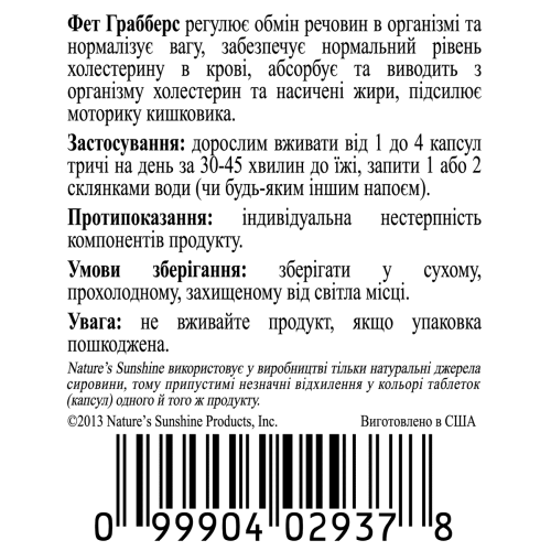 БАД к пище Фэт Грабберс является дополнительным источником пищевых волокон, содержит флавоноиды и дубильные вещества.