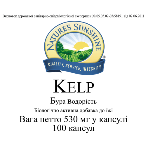 БАД к пище Келп является дополнительным источником йода, содержит растворимые пищевые волокна (альгинаты).