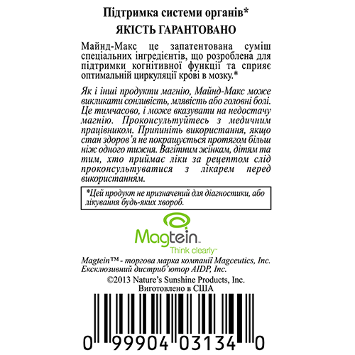 БАД к пище Майнд-Макс является дополнительным источником магния.