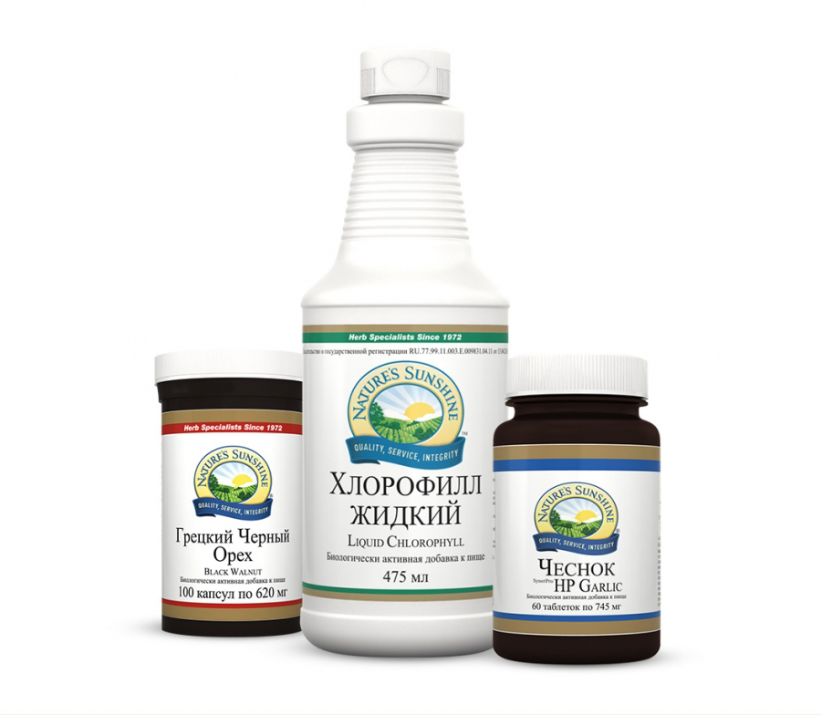 Эта пара профессиональных бойцов в наборе сопровождается самым популярным продуктом компании NSP – Жидким Хлорофиллом. Его основная задача – обезвреживание продуктов распада паразитов в кишечнике и скорейшее выведение их из организма.