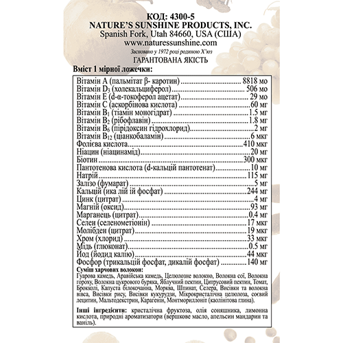 Пищевые волокна необходимы для нормальной работы желудочно-кишечного тракта и обеспечения усвоения витаминов и биоэлементов, входящих в состав комплекса. В составе продукта находится клетчатка, которая содержит антиоксиданты и другие биологически активные вещества.